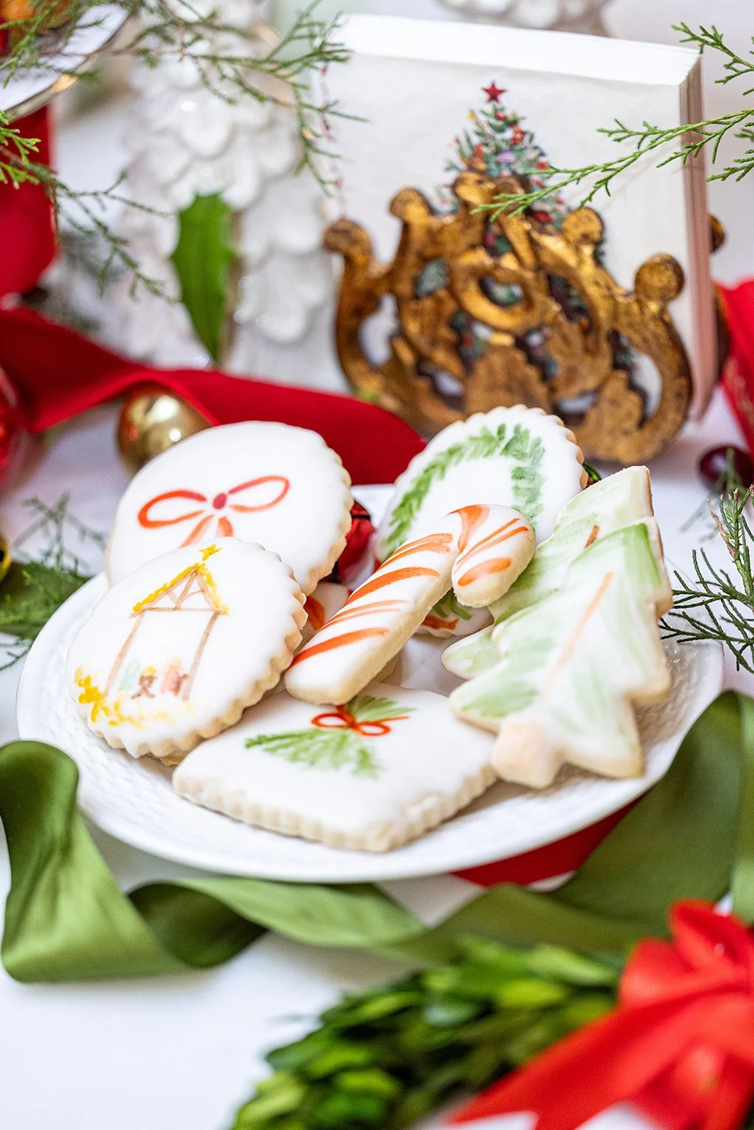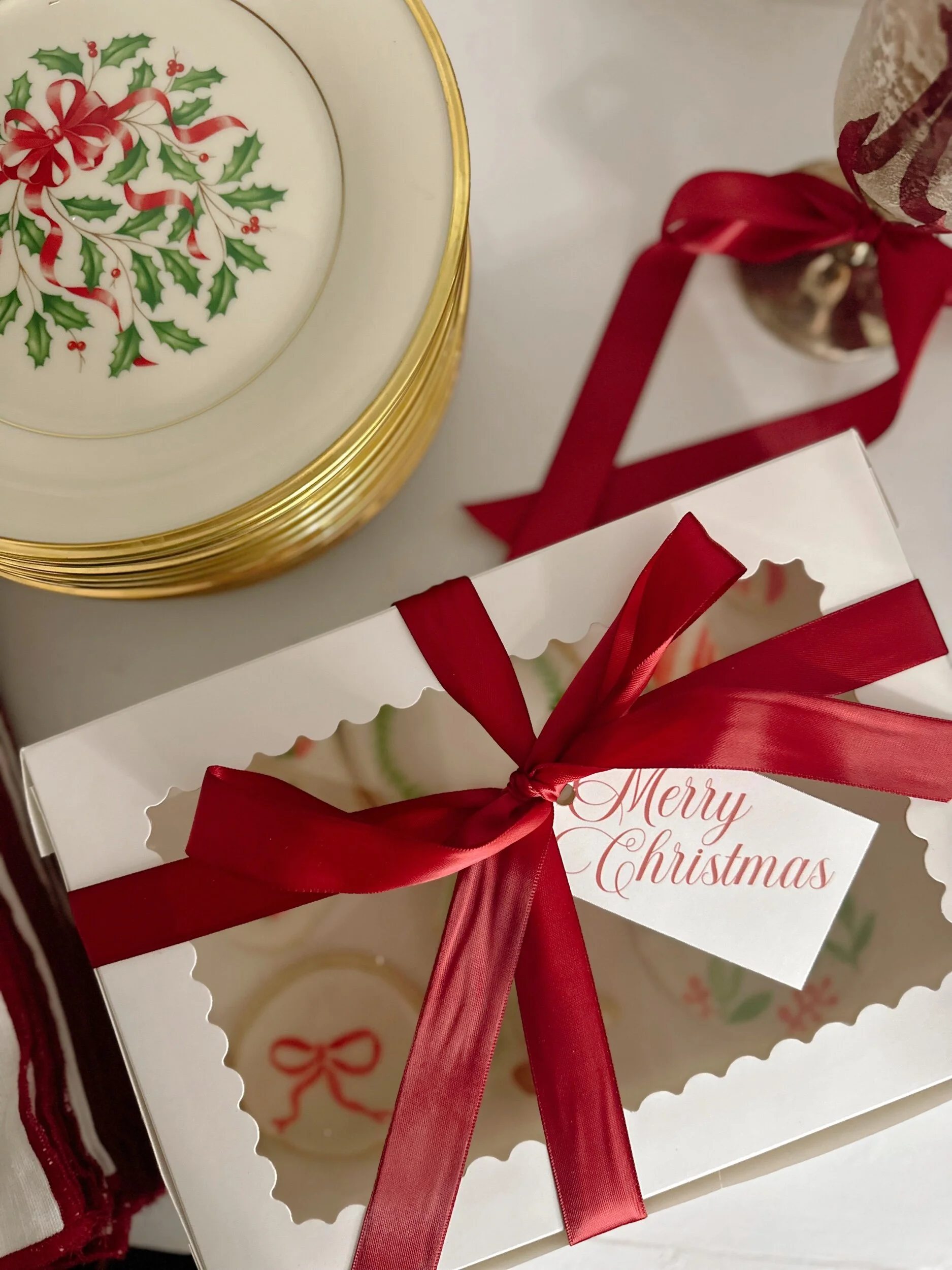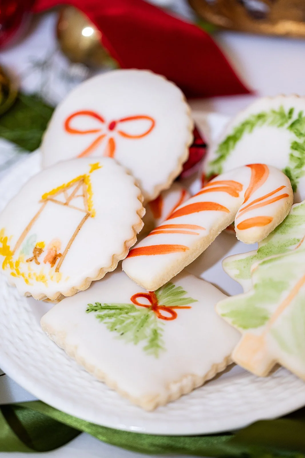 Soft and buttery vanilla bean sugar cookies. These are iced with a vanilla melt-in-your-mouth icing, with hand-painted Christmas designs! Comes with half a dozen.