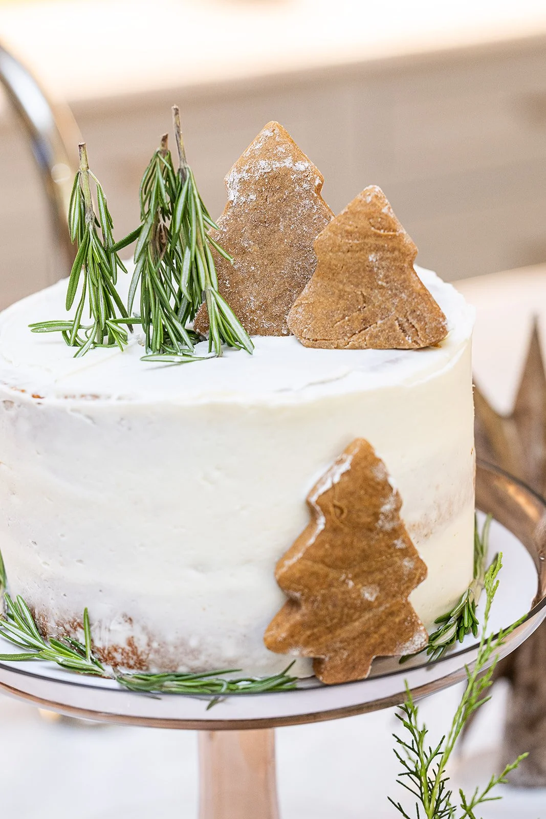 Nutmeg, ginger, cloves, cardamom, allspice, butter, brown sugar, granulated sugar, eggs, buttermilk, Mexican vanilla, almond extract, molasses, sour cream, all-purpose flour, salt, baking powder, cream cheese, powdered sugar
