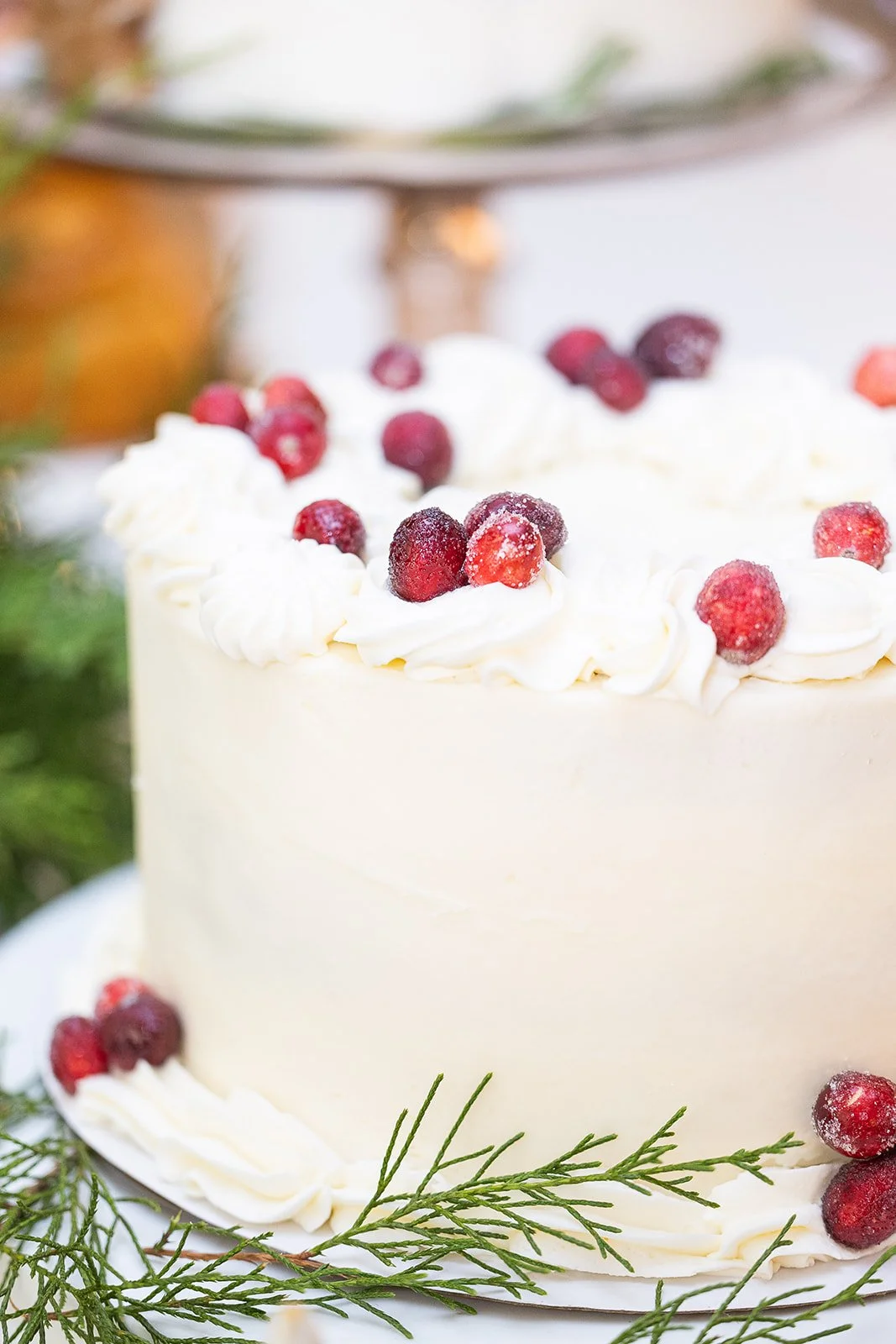 Unsalted butter, granulated sugar, vegetable oil, egg whites, vanilla bean paste, almond extract, all-purpose flour, salt, baking soda, baking powder, buttermilk, powdered sugar, heavy cream