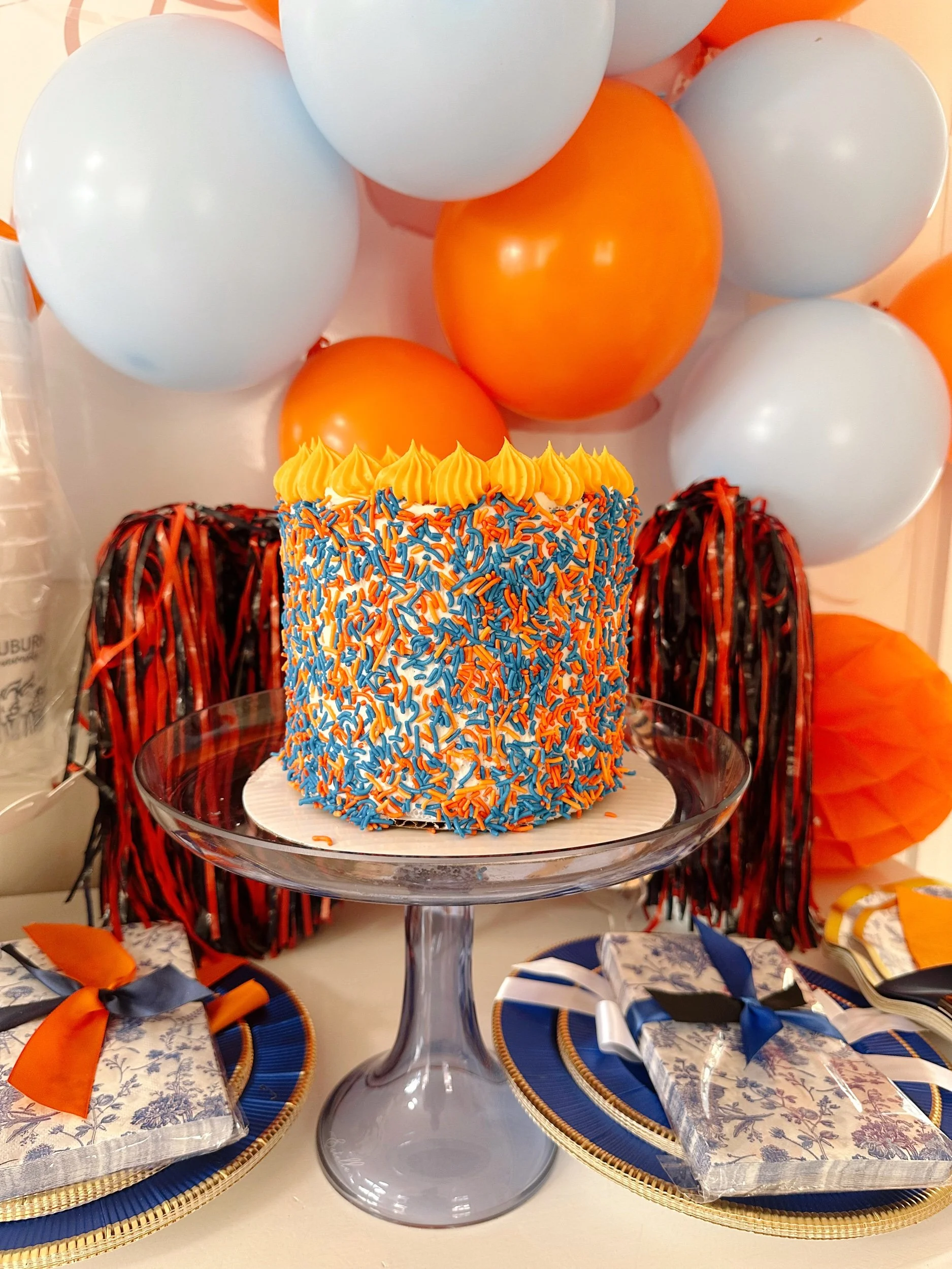 Auburn Funfetti is a delicious vanilla cake packed with orange and blue sprinkles—perfect for celebrating this special milestone in true Tiger spirit! 🎓