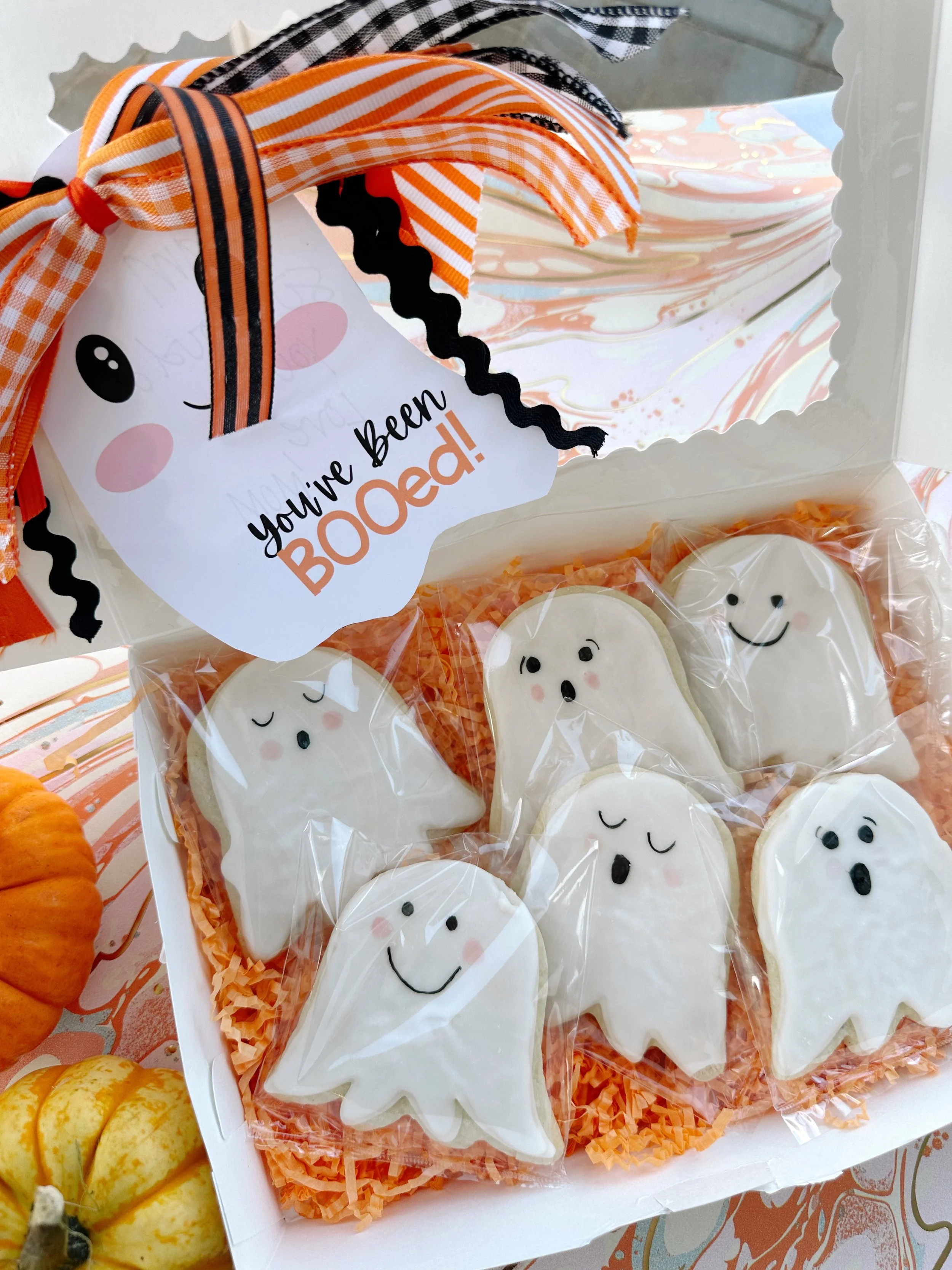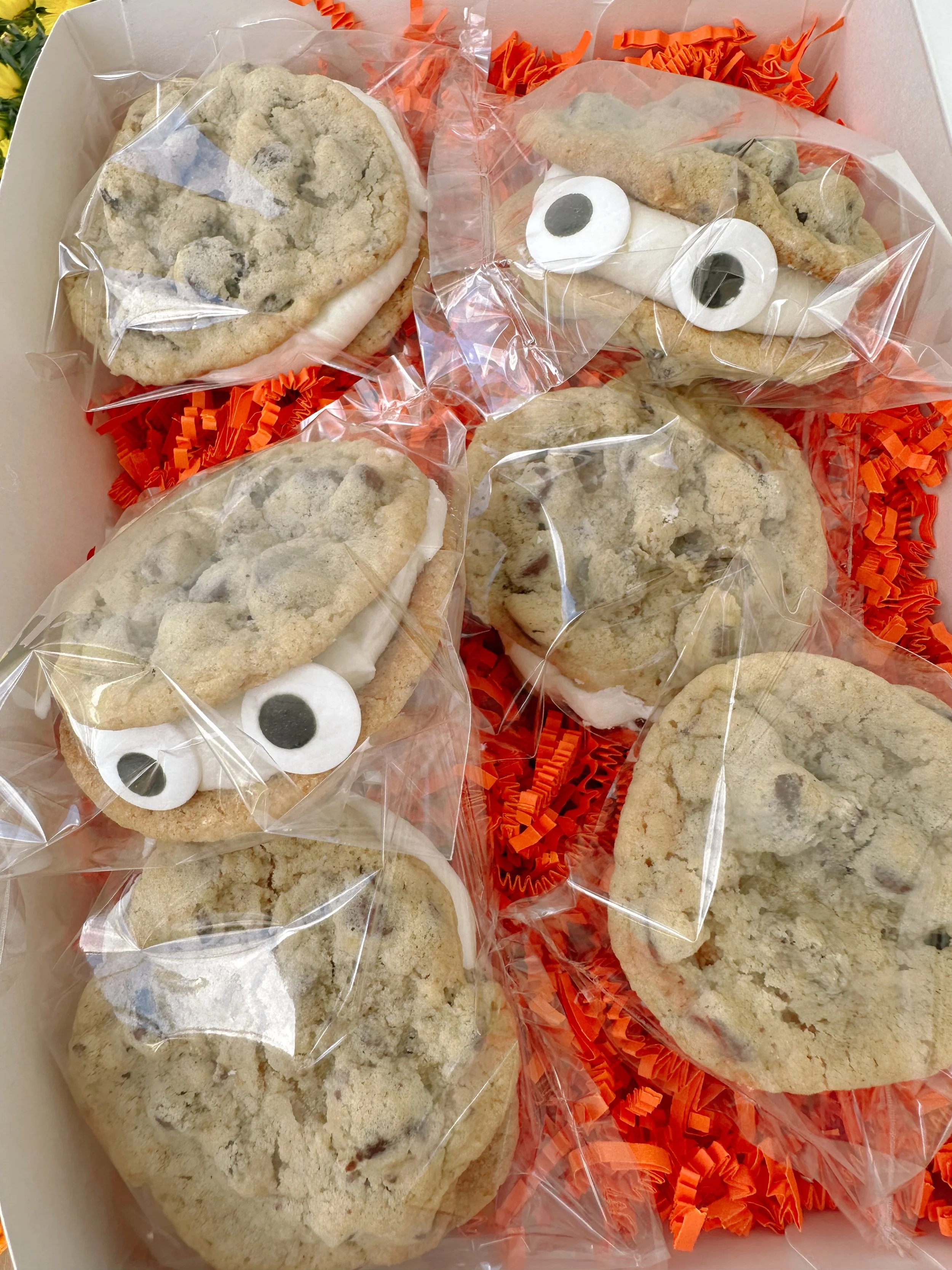 Boo Box — 6 Ghost Sugar Cookies 👻 $35.00 Boo! Cookie Treat Bag $15.00 Cookie Monster Cookie Sandwiches- PICKUP ONLY!! $35.00 Boo Box DELIVERY 10/30 $35.00 Cookie Monster Chocolate Chip Cookie Sandwiches DELIVERY ONLY 10/30 $35.00